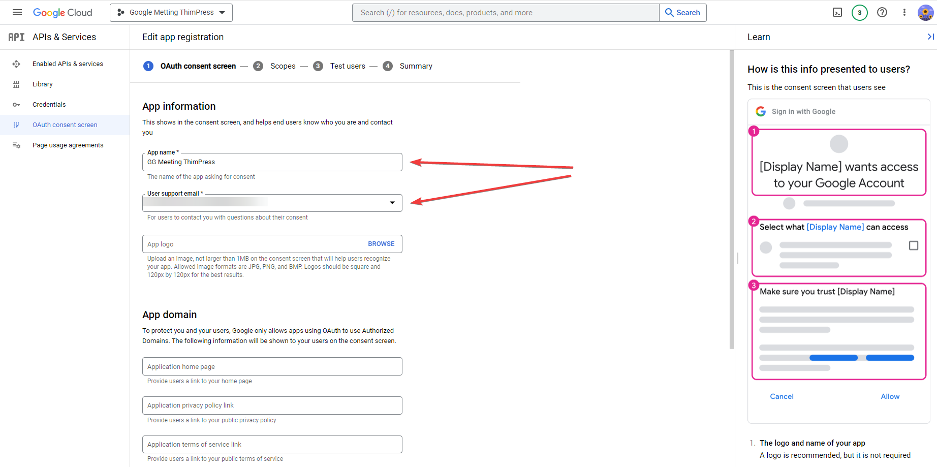 Note: If you use personal gmail to register, please select + Add Users in the Test users section after completing the above step. After that, enter your own email and Save.